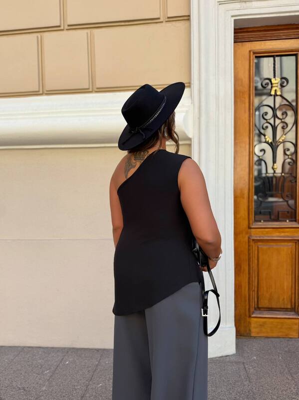 Топ прекрасно вписывается как в повседневные, так и в вечерние ансамбли. Его можно комбинировать с брюками, юбками или жакетами, создавая элегантные и актуальные образы. Благодаря минималистичному дизайну и универсальному крою он легко станет базовым элементом гардероба. Эта модель — must-have для женщин, которые ценят стиль, комфорт и изысканность.