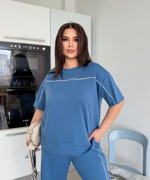 Костюм-двойка женский из двунитки пенье с футболкой и широкими брюками свободного кроя демисезонный k-128889