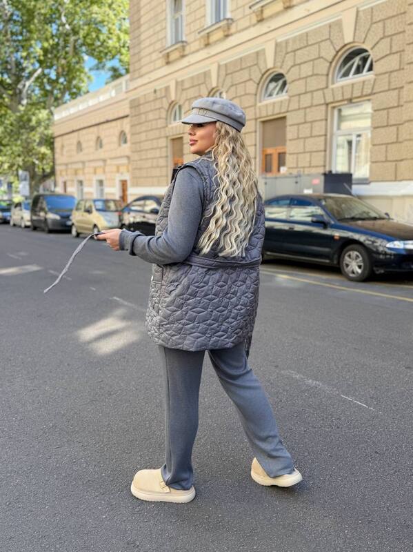 Комплект состоит из базового свитшота, удобных брюк и стёганого жилета из плащевки. Жилет дополнен поясом, который позволяет подчеркнуть талию и регулировать посадку, а также карманами, добавляющими практичности. Брюки свободного кроя с комфортной посадкой и свитшот лаконичного дизайна создают гармоничный образ в стиле casual. Все элементы идеально сочетаются между собой, образуя цельный ансамбль, но при этом каждый элемент можно использовать отдельно, комбинируя с другими вещами гардероба.