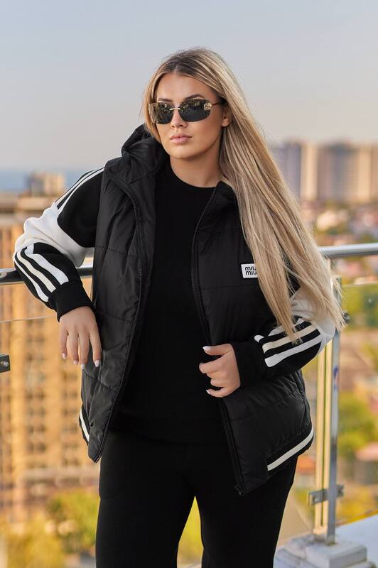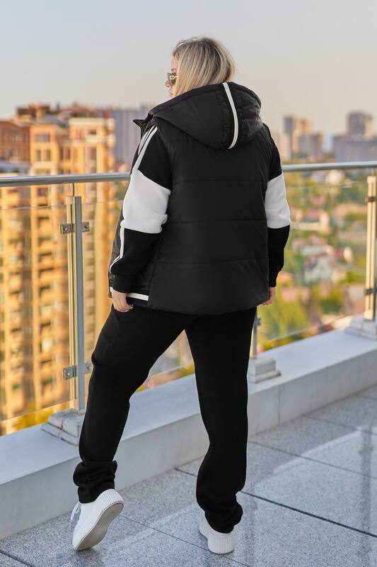 Костюм-тройка женский черный — это универсальный комплект, который сочетает в себе практичность, комфорт и модный спортивный стиль. В его состав входят утеплённый жилет из плащевки с силиконовым наполнителем 150, стёганая структура которого обеспечивает надёжное сохранение тепла и лёгкость при носке, а также костюмная база из мягкой трикотажной ткани, которая дарит комфорт и свободу движений.