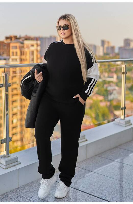 Черный цвет делает комплект универсальным и практичным, позволяя легко сочетать его с любыми аксессуарами и обувью. Благодаря свободному крою и удобной посадке, костюм подойдёт для женщин с разными типами фигуры, обеспечивая стильный внешний вид и комфорт в прохладные осенние дни.