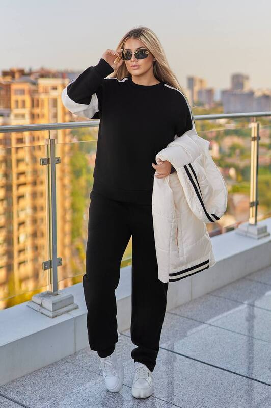 Костюм выполнен из качественной трехнитки на флисе, которая хорошо сохраняет тепло, оставаясь мягкой и комфортной для тела. Свободный крой обеспечивает удобство движений, позволяя носить комплект как в городе, так и для активного отдыха.
