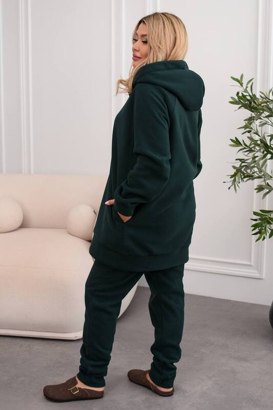 Темно-зеленый оттенок подчеркивает элегантность и гармонично смотрится как в повседневных, так и в уютных домашних образах. Костюм идеально подходит для прогулок, путешествий, отдыха или уютных вечеров дома. Легко сочетается с кроссовками, спортивной обувью или теплой зимней обувью, а многослойность позволяет адаптировать его под разные ситуации.