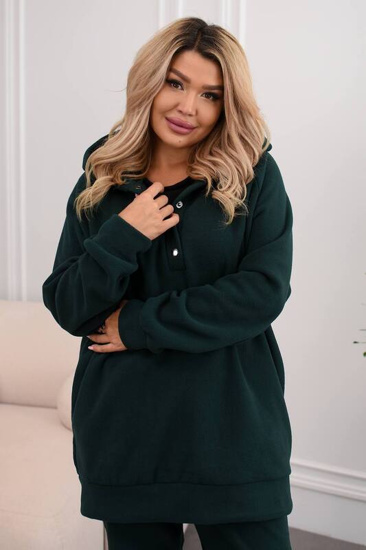 Костюм-тройка женский темно-зеленый из рубчика и флиса утепленный с майкой худи и брюками осенне-зимний больших размеров  k-124262