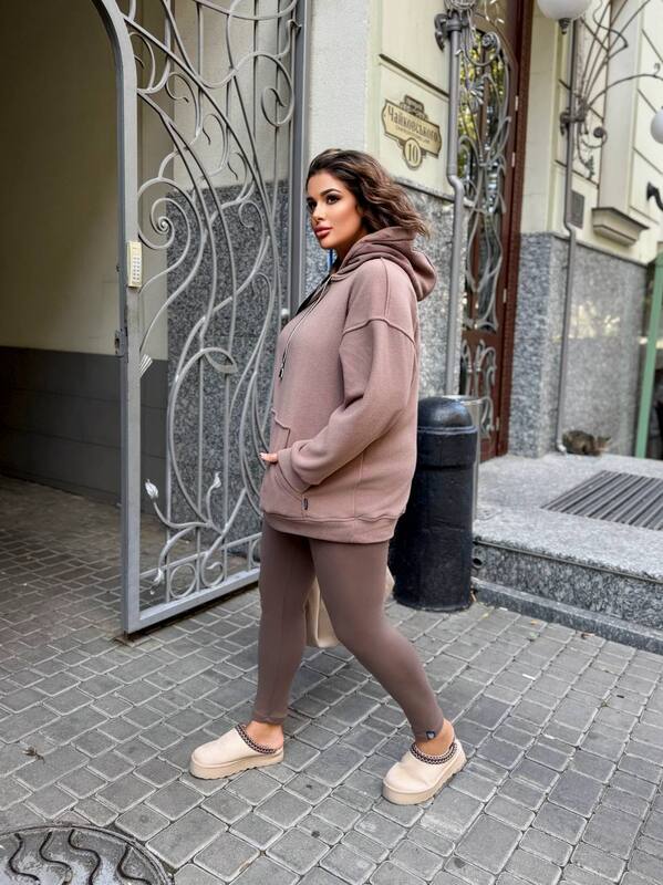 Ткань худі: Приємний мʼякий теплий фліс, гарна розтяжність. Тканина лосин: теплий флісовий трикотаж