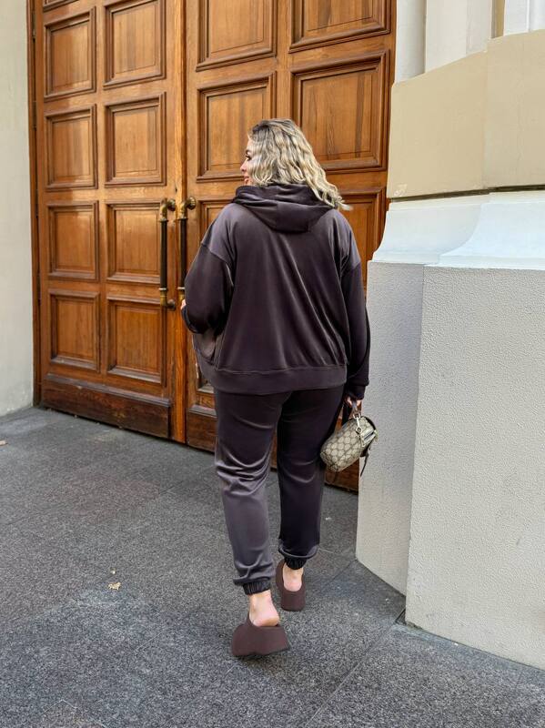 Такой костюм прекрасно сочетается со спортивной обувью, но также легко комбинируется с более элегантными аксессуарами для создания casual-образов. Это практичный и модный вариант для женщин, которые хотят выглядеть стильно и уверенно, оставаясь в комфорте в течение всего дня.