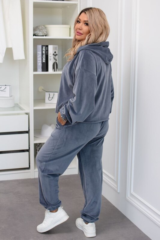 Женский спортивный костюм из турецкого велюра в оттенке графит — стильное решение для прохладного осеннего сезона. Мягкий и приятный к телу материал обеспечивает комфорт в течение всего дня, а современный крой позволяет выглядеть элегантно даже в повседневных образах.