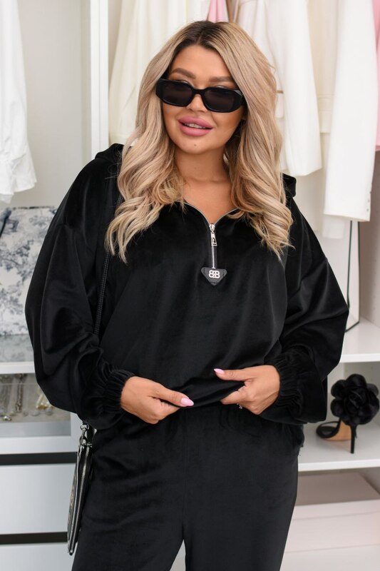 Благородный черный оттенок универсален и всегда в тренде — он легко сочетается с любой обувью и аксессуарами, от кроссовок до ботинок. Костюм отлично подойдет для прогулок, встреч с друзьями или домашнего уюта, сохраняя баланс между удобством и элегантностью. Турецкий велюр отличается износостойкостью и долго сохраняет насыщенный цвет, что делает этот комплект надежным вложением в базовый гардероб.