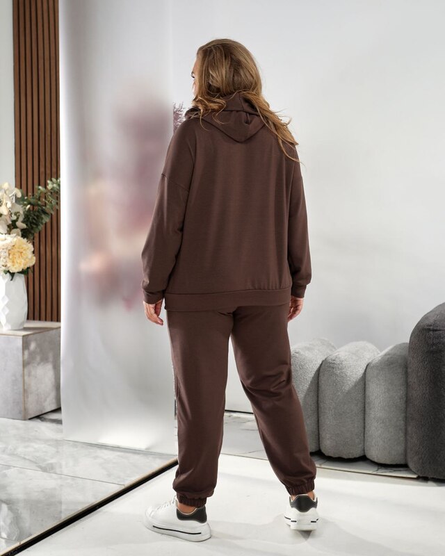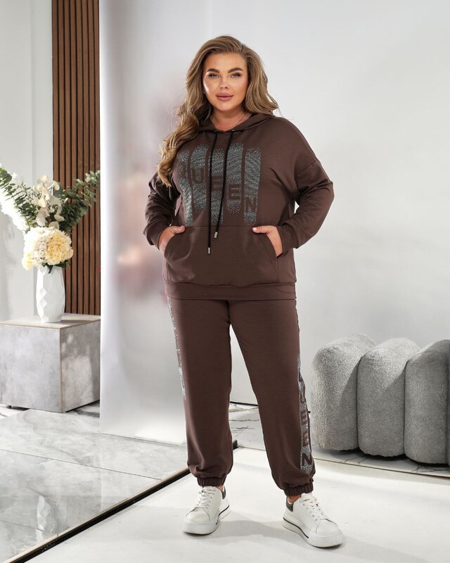 Такой костюм станет универсальным выбором для прогулок, активного отдыха и повседневной носки. Он прекрасно сочетается с кроссовками и кедами, создавая стильный и удобный городской образ. Благодаря удачному крою и качественному материалу модель подходит для женщин разных комплекций, включая обладательниц пышных форм. Этот костюм — это гармония удобства, функциональности и модного дизайна, который будет актуален в любом повседневном гардеробе.