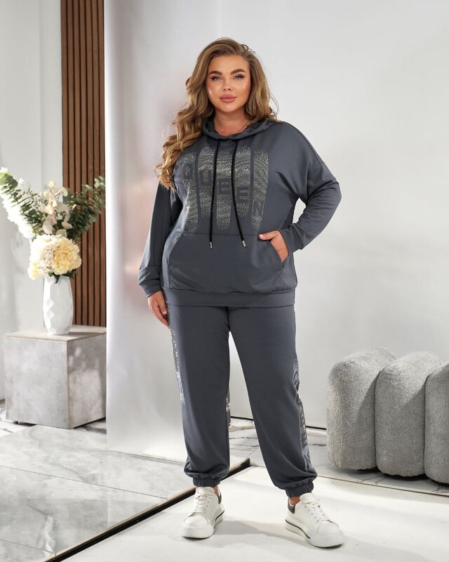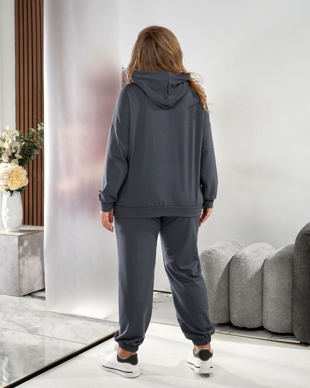 Этот комплект отлично подойдет для прогулок, активного отдыха и ежедневной носки. Его можно сочетать с кроссовками или кедами, что делает его универсальным для городского стиля. Благодаря свободному крою и качественному материалу костюм подойдет женщинам с разными типами фигуры, включая пышные формы. Модель дарит комфорт, уверенность и современный внешний вид, который будет уместен в любой повседневной ситуации.