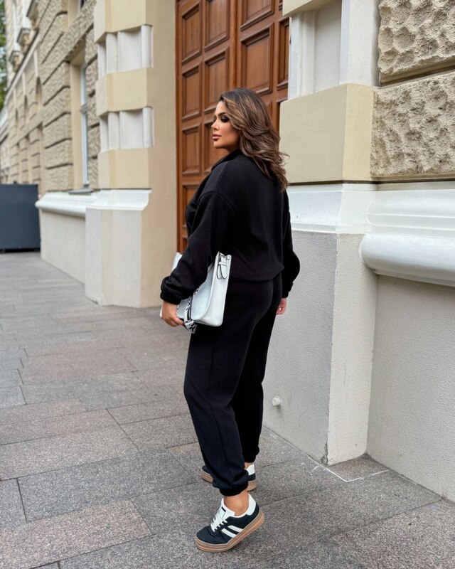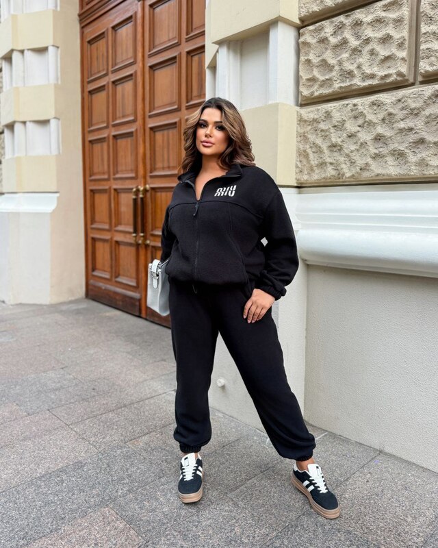 Брюки прямого кроя на мягкой резинке обеспечивают комфортное прилегание и удобство движений. Благодаря универсальному дизайну костюм прекрасно вписывается как в повседневные прогулочные образы, так и в активный отдых. Черный цвет делает его базовым и легко комбинируемым с обувью и аксессуарами. Такой комплект станет must-have для женщин, которые ценят тепло, практичность и элегантную простоту.