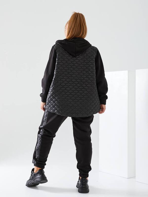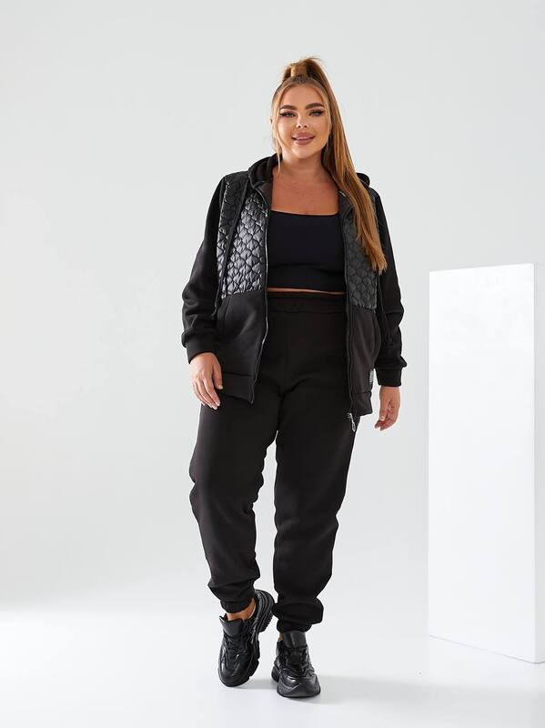 Отзывы о Спортивный костюм-двойка женский черный утепленный из трехнитки на флисе со стегаными вставками и капюшоном осенне-зимний k-124382