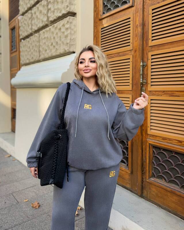 Отзывы о Спортивный костюм-двойка женский из замши на дайвинге с худи оверсайз и вышивкой осенне-зимний k-124394