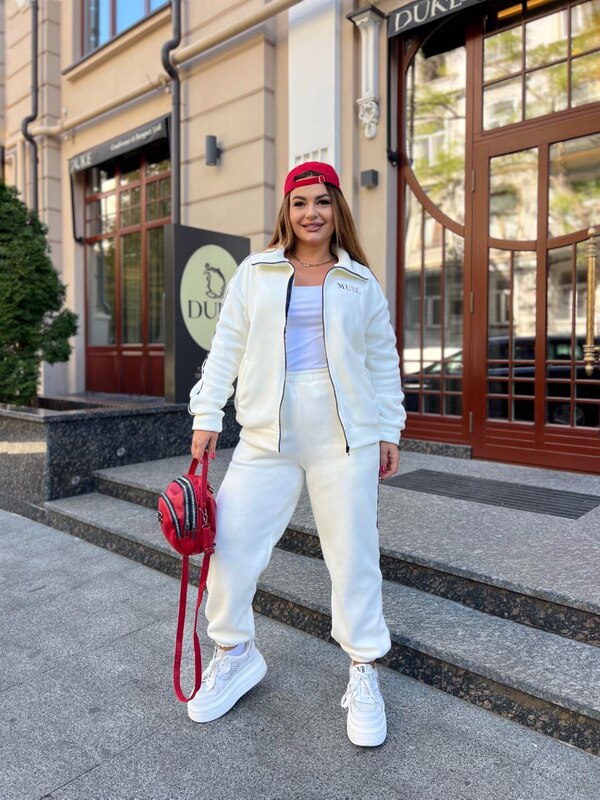 Этот костюм станет незаменимым выбором для прогулок, активного отдыха и уютных повседневных образов. Универсальный молочный оттенок прекрасно сочетается с любой верхней одеждой и обувью — от кроссовок до стильных ботинок. Он создаёт гармоничный, уверенный и женственный образ, даря ощущение тепла и комфорта в любую погоду.