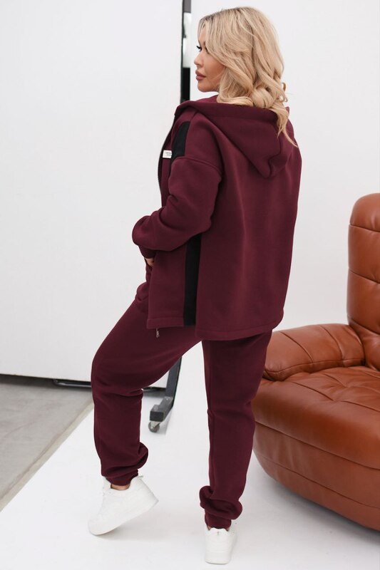 Глубокий бордовый оттенок делает костюм выразительным, стильным и универсальным для холодного времени года. Он сочетает в себе уют и эффектный внешний вид, прекрасно гармонирует с зимней обувью, пуховиками, жилетами и аксессуарами. Такой комплект подойдёт для прогулок, поездок, городской активности, отдыха дома и любых ситуаций, где важны комфорт и привлекательный внешний вид.