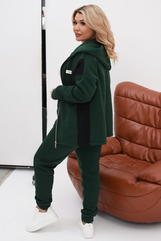 Смарагдовый оттенок выделяет костюм среди классических моделей, добавляя образу свежести, глубины и благородства. Это цвет, который подчёркивает фигуру, прекрасно сочетается с белой обувью, пуховиками, жилетами и зимними аксессуарами. Такой костюм идеально подойдёт для прогулок, поездок, поездки за город, повседневной активности и уютного отдыха дома.