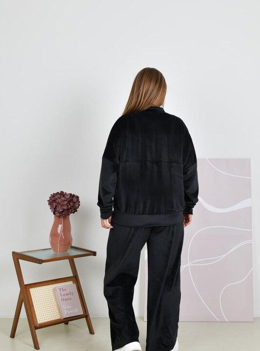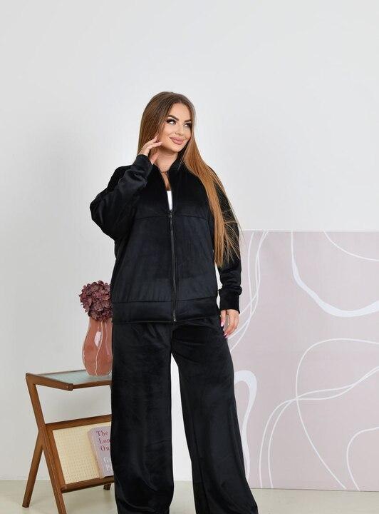 Отзывы о Спортивный костюм женский из велюра с кофтой на молнии и широкими брюками оверсайз демисезонный k-128062