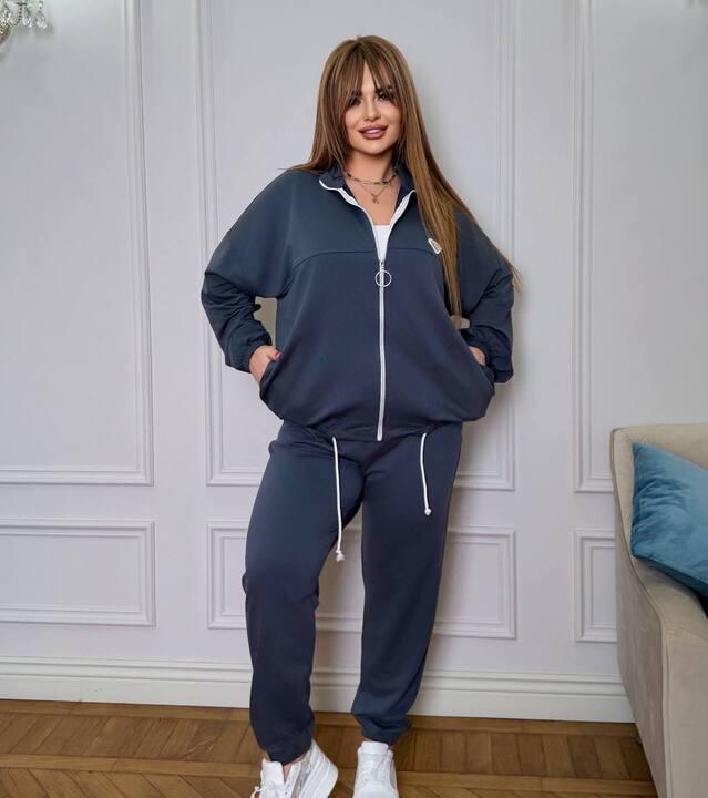 Этот спортивный костюм — удачное сочетание комфорта, современного силуэта и практичности на каждый день. Комплект выглядит собранно, стильно и актуально, при этом остаётся максимально удобным для активного ритма жизни. Верх выполнен в свободной посадке и дополнен застёжкой на молнии, благодаря чему модель смотрится динамично, современно и очень удобно в носке. Такой костюм отлично подходит для прогулок, повседневных выходов, поездок, встреч и тех случаев, когда хочется выглядеть аккуратно, но без лишней строгости.