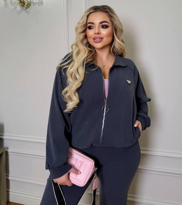 Этот спортивный костюм — отличный вариант для тех, кто хочет получить комфортный, современный и действительно эффектный образ на каждый день. Комплект выглядит стильно, аккуратно и дорого за счёт удачного сочетания фактурной ткани, свободной посадки и продуманного кроя. Верх на молнии делает модель особенно удобной в носке, а расслабленный силуэт помогает чувствовать себя свободно и уверенно в течение всего дня. Такой костюм легко вписывается в повседневный гардероб и подходит для прогулок, поездок, встреч, отдыха и активного городского ритма.