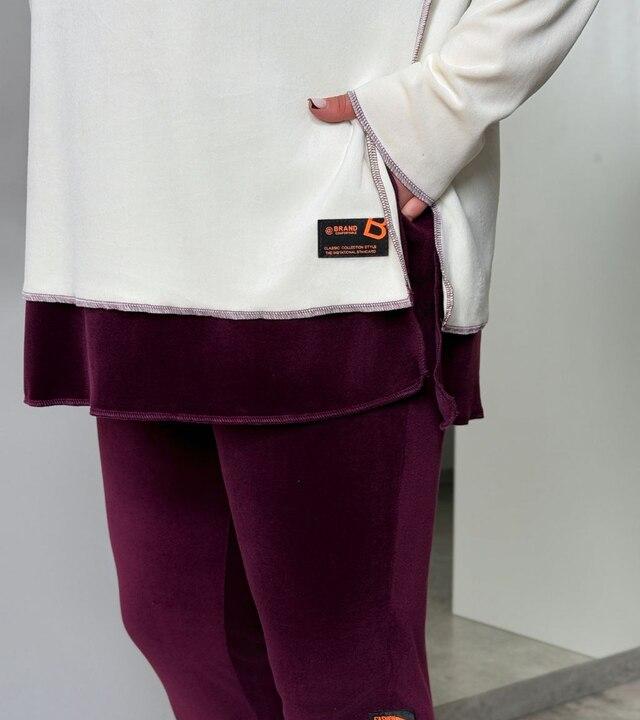 Женский спортивный костюм-двойка из королевского велюра — это комфортный, стильный и очень практичный комплект, который отлично подходит для повседневной носки, прогулок, поездок и активного ритма жизни. По фото видно, что модель смотрится мягко, аккуратно и современно, а сочетание свободной туники и брюк 7/8 на манжете делает образ более собранным, гармоничным и удобным. Такой костюм особенно хорошо подойдет женщинам, которые ценят комфорт, любят свободную посадку и хотят, чтобы одежда выглядела не только практично, но и действительно красиво.