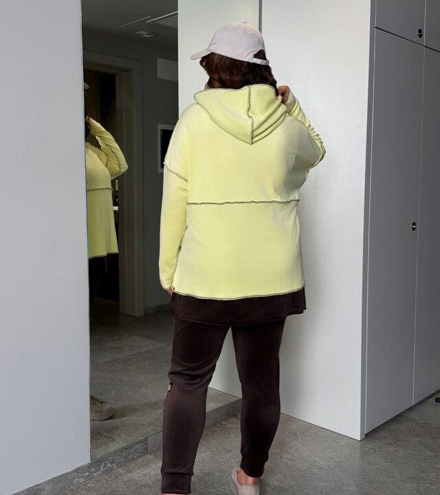 Женский спортивный костюм-двойка из королевского велюра — это комфортный, стильный и очень удачный комплект для повседневной носки, прогулок, поездок и активного ритма жизни. По фото видно, что модель смотрится мягко, аккуратно и современно, а сочетание свободной туники и зауженных брюк на манжете делает образ более собранным, гармоничным и удобным. Такой костюм особенно хорошо подойдет женщинам, которые ценят комфорт, любят свободную посадку и хотят, чтобы одежда выглядела не только практично, но и действительно красиво.