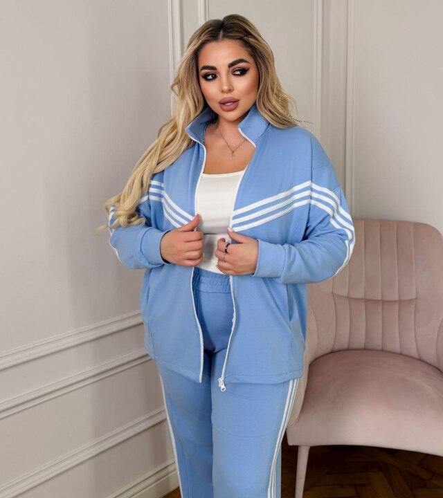 Брюки с высокой посадкой делают костюм особенно удачным для повседневной носки и размеров plus size. Такой фасон помогает красиво оформить силуэт, делает посадку более удобной и позволяет чувствовать себя уверенно в течение всего дня. Низ брюк с регулировкой добавляет практичности и позволяет адаптировать посадку под обувь и личные предпочтения. Этот костюм можно носить как готовый образ или сочетать верх и низ по отдельности с другими вещами гардероба. Это отличный выбор для женщин, которые ищут современный, удобный и действительно носибельный спортивный костюм с продуманными деталями, красивой посадкой и высоким уровнем комфорта.