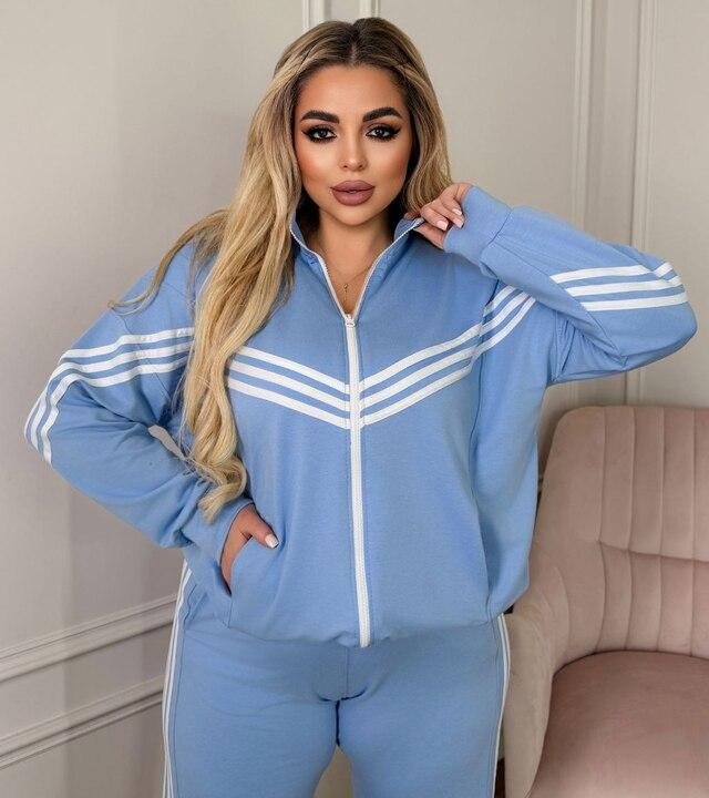 Женский спортивный костюм-двойка — это удобный, стильный и современный комплект, который отлично подходит для повседневной носки, прогулок, поездок и активного ритма жизни. По фото видно, что модель смотрится аккуратно, свежо и очень гармонично: свободная кофта красиво сидит по фигуре, не сковывает движения и создает расслабленный, уверенный силуэт, а брюки с высокой посадкой делают образ более собранным и визуально вытянутым. Такой костюм легко становится одной из самых любимых вещей в гардеробе, потому что сочетает в себе комфорт, практичность и актуальный спортивный стиль.