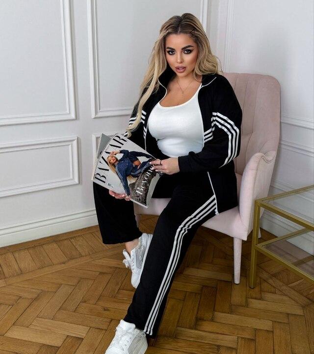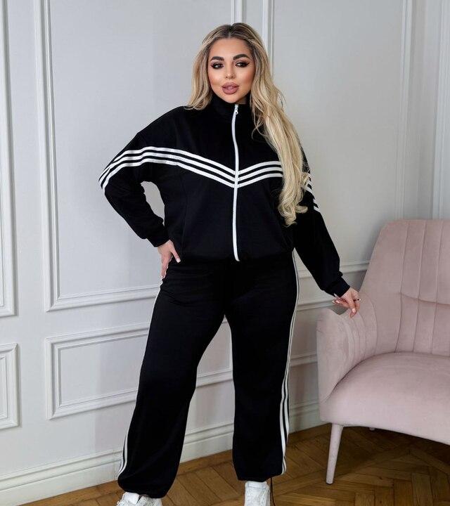 Брюки с высокой посадкой помогают сформировать удобную и красивую посадку, визуально вытягивают силуэт и делают комплект еще более гармоничным. Низ с регулировкой добавляет практичности и позволяет подстроить посадку под обувь и личные предпочтения. Свободный крой не сковывает движения, поэтому костюм отлично подходит для размеров plus size. Такой комплект можно носить как готовый образ или сочетать верх и низ отдельно с другими вещами гардероба. Это прекрасный выбор для тех, кто ищет стильный, комфортный и действительно носибельный спортивный костюм с современными деталями и удобным фасоном на каждый день.