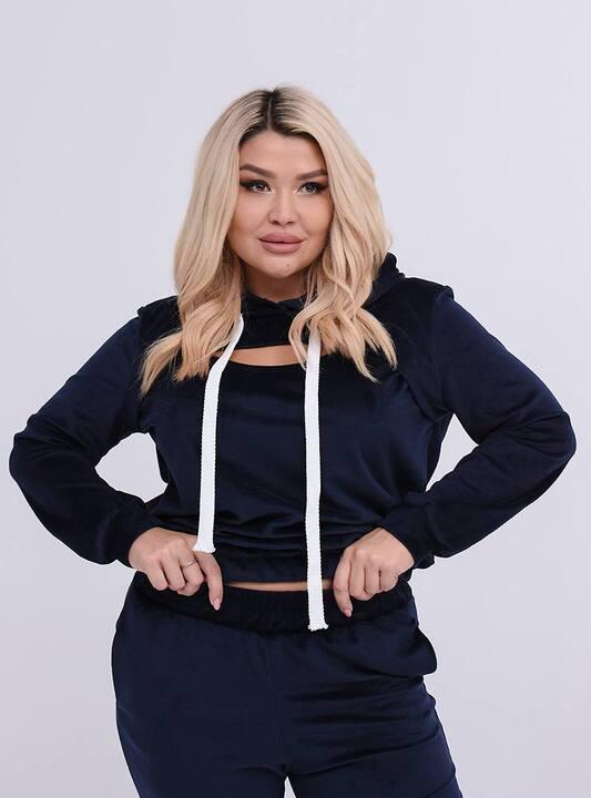 Велюр делает этот костюм особенно приятным в носке. Материал мягкий, комфортный к телу, хорошо тянется и красиво смотрится в готовом изделии. Он создает ощущение уюта, при этом комплект выглядит аккуратно и современно. Такой костюм станет отличным выбором для повседневного гардероба, когда хочется чувствовать себя свободно, уверенно и выглядеть стильно без лишних усилий.