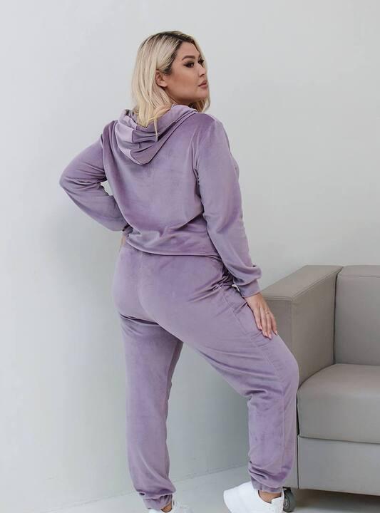 Велюр делает костюм особенно приятным в носке. Материал мягкий, комфортный к телу, красиво смотрится в готовом изделии и придает вещи более аккуратный и ухоженный вид. Он хорошо подходит для повседневного гардероба, когда хочется сочетать удобство, практичность и приятные тактильные ощущения. Такой костюм станет отличным выбором для женщин, которые ищут универсальный комплект на каждый день с комфортной посадкой, современным фасоном и выразительными деталями.