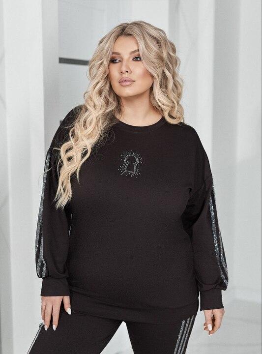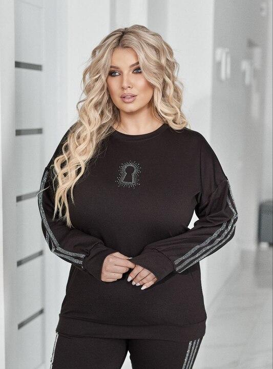 Кофта выполнена в свободном крое, поэтому красиво садится по фигуре, не сковывает движения и дарит комфорт в течение всего дня. За счет лаконичного силуэта верх выглядит аккуратно и современно, легко сочетается не только с комплектными брюками, но и с джинсами, леггинсами или другой повседневной одеждой. Длинные рукава делают модель особенно удобной для весеннего сезона, а декоративные лампасы добавляют образу динамичности и подчеркивают спортивный характер комплекта. Такой верх отлично подходит для тех, кто ценит удобство и хочет выглядеть стильно без лишних усилий.