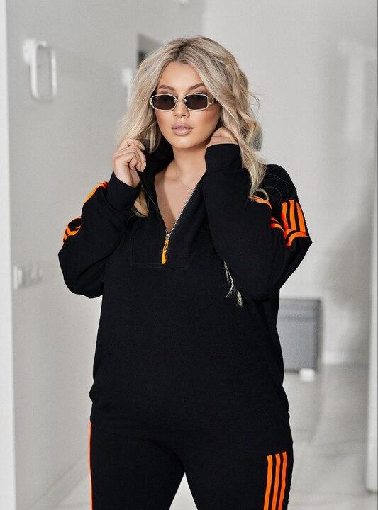 Отзывы о Спортивный костюм женский из двунитки с кофтой на молнии и зауженными брюками с лампасами демисезонный k-128347