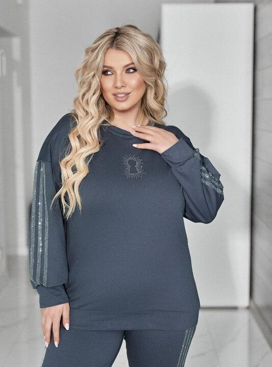 Кофта выполнена в свободном крое, поэтому красиво садится по фигуре, не сковывает движения и дарит комфорт в течение всего дня. За счет лаконичного силуэта верх выглядит аккуратно и современно, легко сочетается не только с комплектными брюками, но и с джинсами, леггинсами или другой повседневной одеждой. Длинные рукава делают модель особенно удобной для весеннего сезона, а декоративные лампасы добавляют образу динамичности и подчеркивают спортивный характер комплекта. Такой верх отлично подходит для тех, кто ценит удобство и хочет выглядеть стильно без лишних усилий.