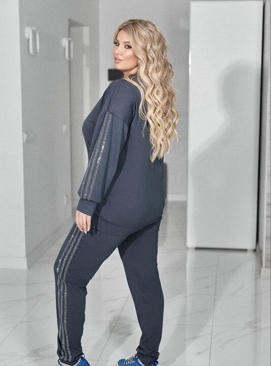 Отзывы о Спортивный костюм женский из двунитки с кофтой свободного кроя и брюками с лампасами демисезонный k-128353