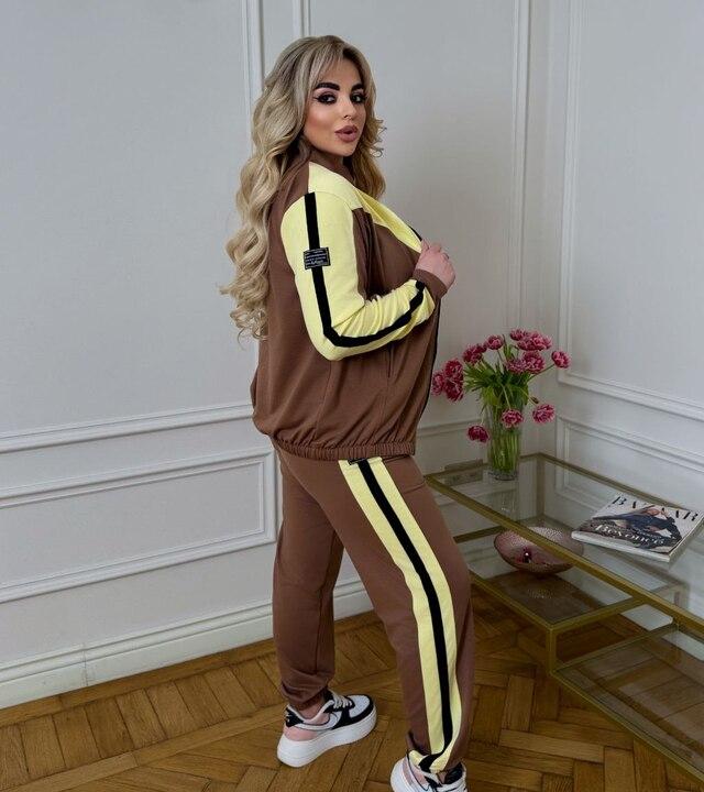 Костюм выполнен из двунитки — материала, который хорошо подходит для весеннего сезона и повседневной носки. Ткань приятная в использовании, практичная и комфортная, позволяет чувствовать себя удобно в течение дня и хорошо подходит для активной повседневной жизни. Это удачный выбор для женщин, которые любят спортивные костюмы с удобным кроем, ценят функциональные детали и хотят добавить в гардероб вещь, которая будет сочетать комфорт, современный внешний вид и универсальность.