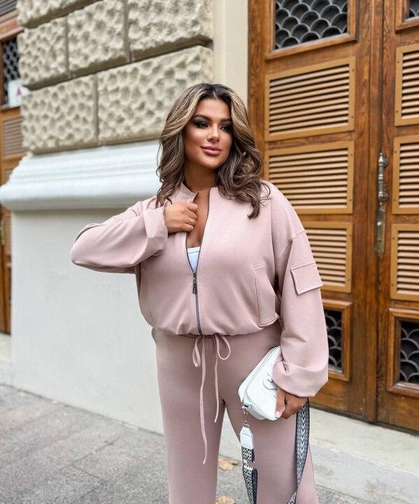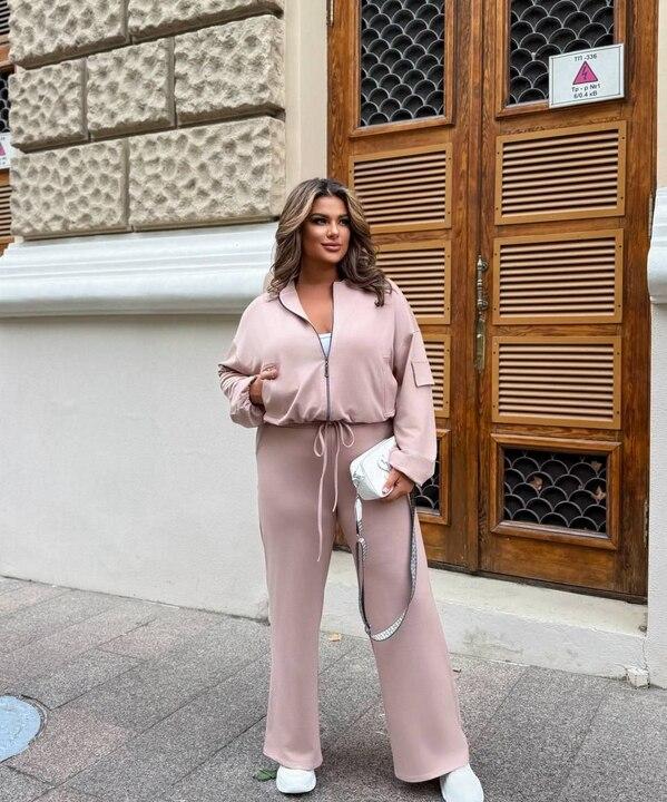 Такой костюм прекрасно сочетается с кедами, кроссовками, жилетами, куртками и объемными сумками. Его можно носить как комплектом, так и раздельно, создавая множество удобных и стильных сочетаний. Это удачный выбор для женщин, которые ценят комфорт, свободу движений и современный повседневный стиль в одной вещи.