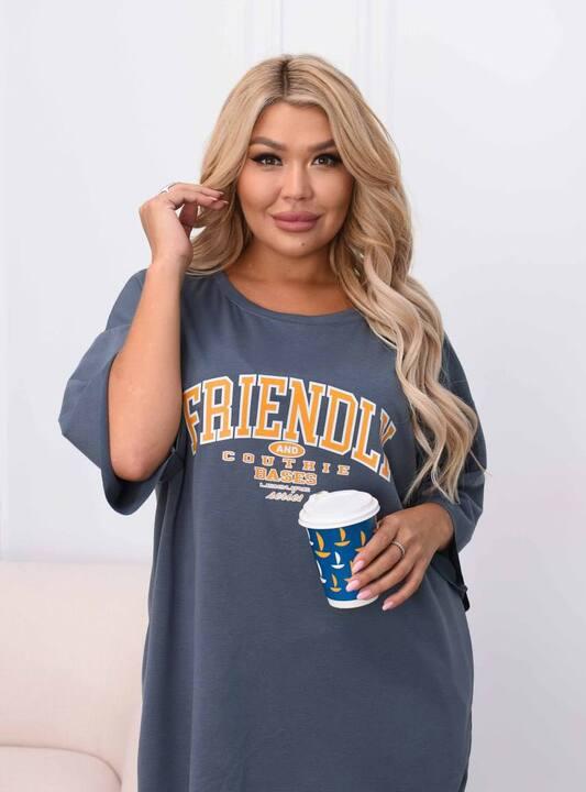 Футболка свободного оверсайз-кроя делает образ особенно актуальным и комфортным. Она мягко ложится по фигуре, не сковывает движения и создаёт тот самый расслабленный силуэт, который так ценится в современной повседневной одежде. Крупная надпись на передней части добавляет комплекту характер, делает его более выразительным и придаёт образу динамику. Такой верх легко смотрится как самостоятельная вещь и отлично сочетается не только с брюками из комплекта, но и с джинсами, шортами или леггинсами.