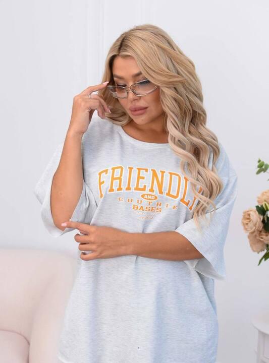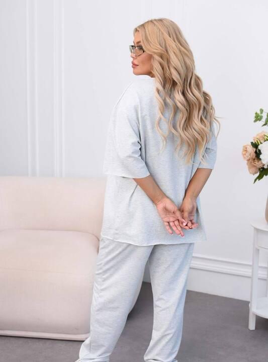 Футболка свободного оверсайз-кроя делает образ особенно актуальным и комфортным. Она мягко ложится по фигуре, не сковывает движения и создаёт тот самый расслабленный силуэт, который особенно ценится в современной повседневной одежде. Крупная надпись на передней части добавляет комплекту характер, делает его более выразительным и придаёт образу динамику. Удлинённый верх смотрится современно, помогает чувствовать себя уверенно и легко сочетается не только с брюками из комплекта, но и с джинсами, шортами или леггинсами.