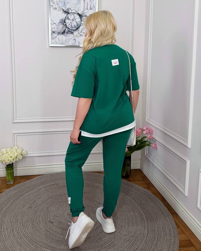 Турецкий кулир приятный к телу, мягкий, легкий и комфортный для теплого сезона. Материал хорошо подходит для весны и лета, дает ощущение свободы, не перегружает образ и удобен в повседневном использовании. Костюм легко сочетать с кроссовками, кедами, слипонами, базовой сумкой или рюкзаком. Это практичный комплект для женщин, которые ценят комфорт, современный спортивный стиль и удачную посадку в больших размерах.