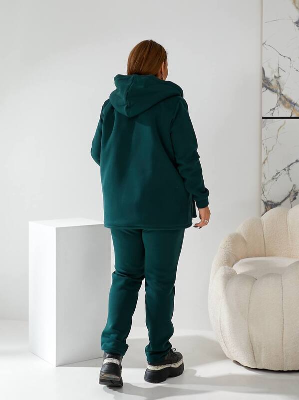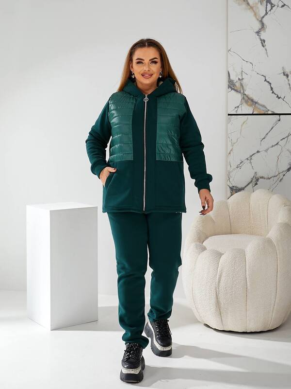 Женский утеплённый костюм из трёхниточного трикотажа с подкладкой из искусственной овчины — это идеальное решение для холодного времени года. Модель сочетает в себе практичность, уют и современный стиль. Верх выполнен из плотного трикотажа с начёсом, а внутренняя часть полочек, спинки и капюшона утеплена мягкой овчиной, создающей надёжную защиту от холода. Вставки из плащевки с прострочкой придают образу стильный акцент и делают костюм более износостойким.