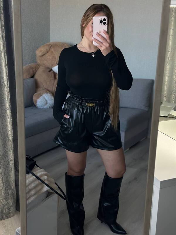 Такие шорты можно комбинировать с блузами, футболками, свитерами или жакетами. Они отлично подходят как для повседневных образов, так и для более эффектных вечерних выходов. В паре с ботинками, сапогами или каблуками они формируют стильный и современный ансамбль. Эта модель станет универсальным решением для женщин, которые ценят комфорт, практичность и модный внешний вид.