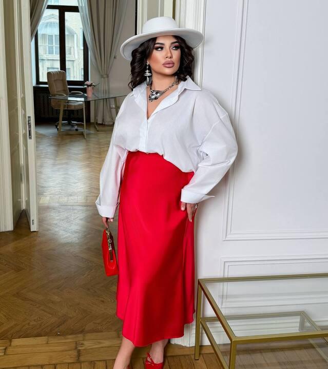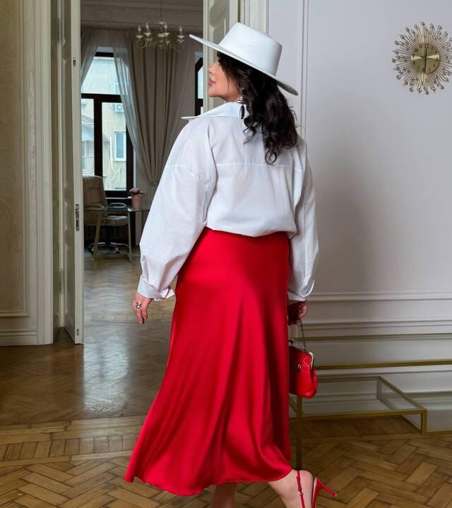 Модель выполнена из королевского атласа — ткани, которая выглядит особенно красиво и выразительно за счёт лёгкого благородного сияния. Материал мягко ложится по фигуре, струится при движении и создаёт дорогой, аккуратный образ. Атласная фактура всегда смотрится эффектно, но при этом остаётся универсальной, поэтому юбку можно носить не только для нарядных выходов, но и в повседневных образах, сочетая с более спокойным верхом. За счёт этого модель легко адаптируется под разное настроение и стиль, а сам образ получается женственным, современным и очень собранным.