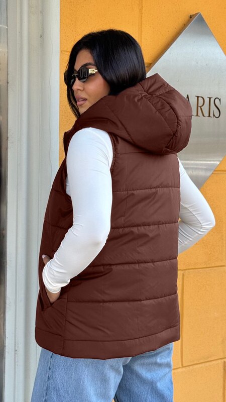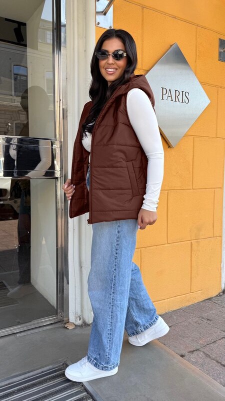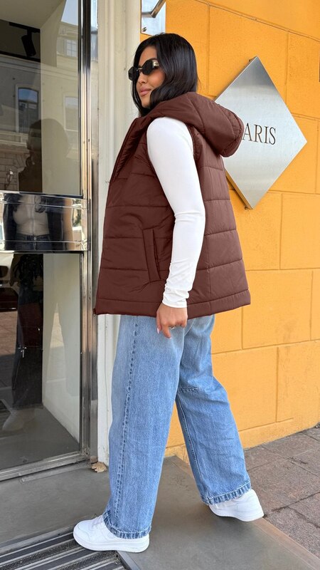 Шоколадно-коричневый оттенок добавляет образу тепла и универсальности — он отлично сочетается с базовыми цветами гардероба. Такой жилет идеально подходит как для прогулок и активного отдыха, так и для городского casual-образа. Он прекрасно комбинируется с джинсами, водолазками, свитшотами и ботинками, создавая модный, практичный и комфортный лук на каждый день.