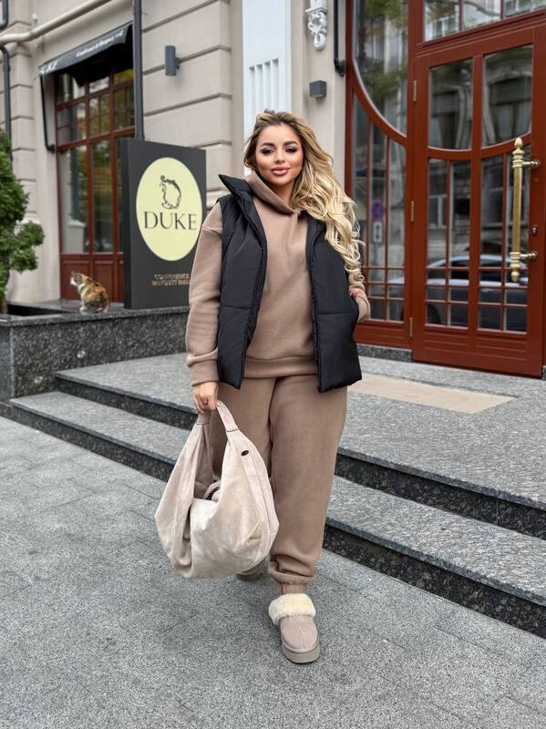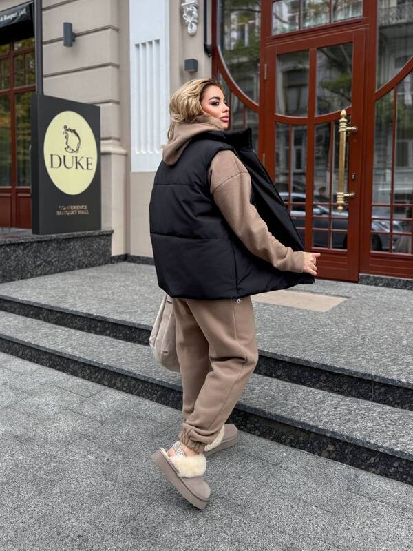 Эта жилетка станет универсальной частью гардероба — её можно сочетать как с брюками и спортивными костюмами, так и с джинсами или трикотажными платьями. Она идеально подходит для прогулок, поездок, отдыха и активных будней, придавая образу актуальности и лёгкости.