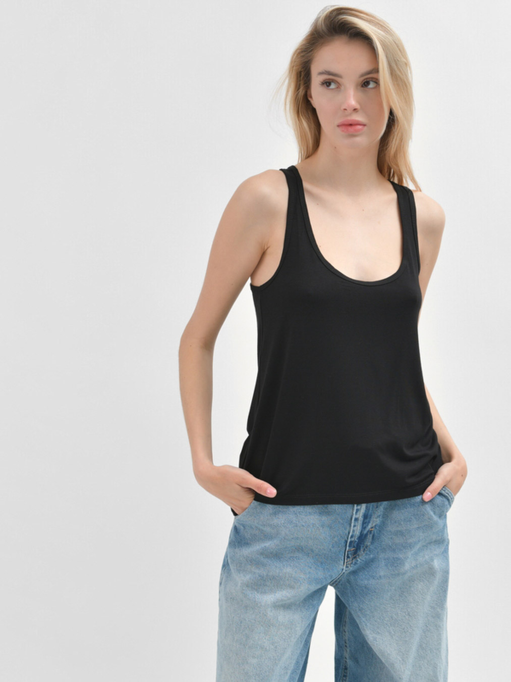 Доступные размеры :[XS, S, M, L] Размер XS:Длина изделия:61Обхват груди:80Размер S:Длина изделия:61Обхват груди:84Размер M:Длина изделия:62Обхват груди:90Размер L:Длина изделия:62Обхват груди:92Классическая майка прямого кроя с круглым вырезом – ваш .. Читать полностью