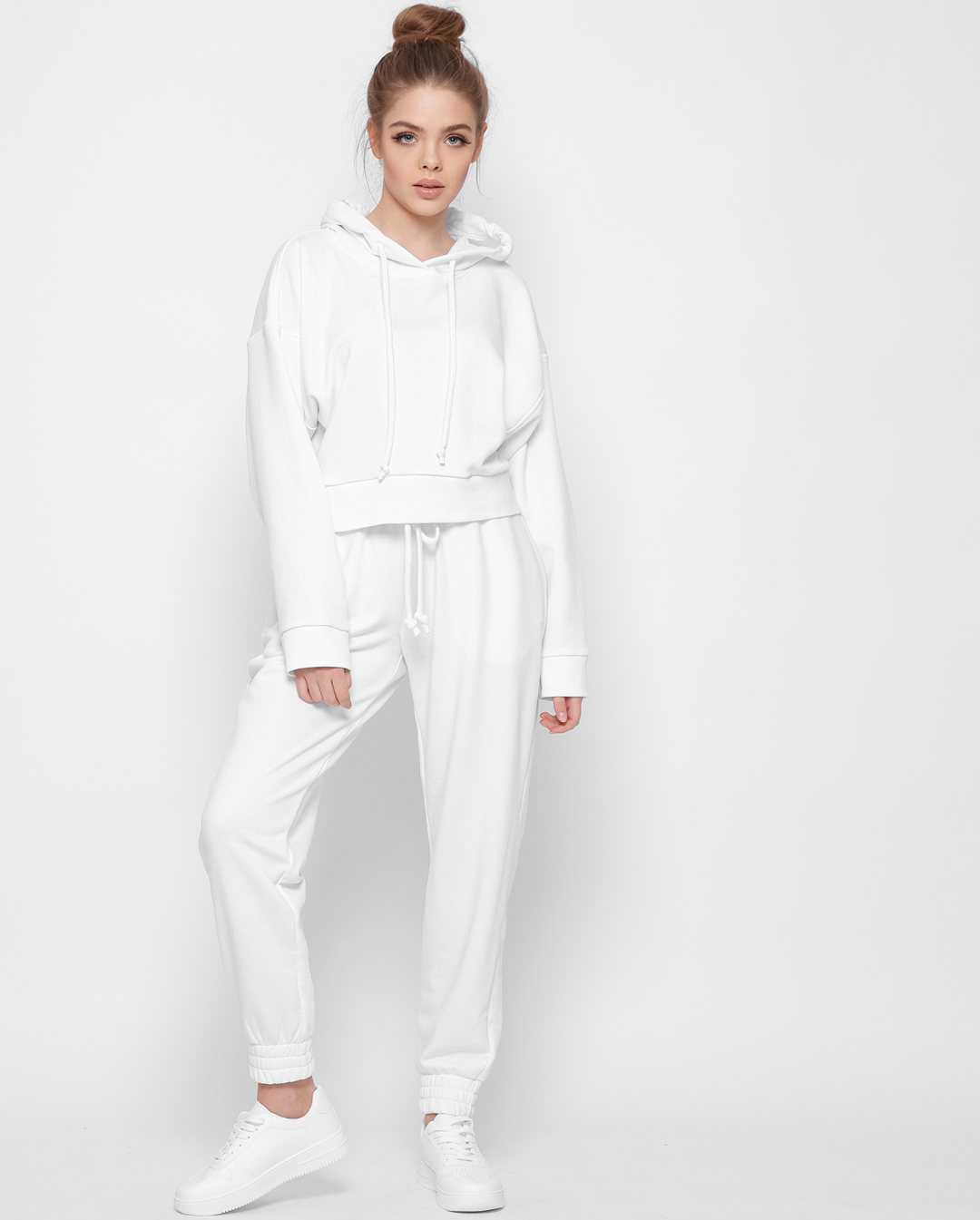 Комфортные женские спортивные брюки идеальны на каждый день и для активных занятий. Модель удобно сидит благодаря эластичным резинкам на штанинах и завязкам на поясе, которые обеспечивают надежную посадку. Два вместительных кармана добавляют практичности, позволяя иметь под рукой необходимые мелочи.
