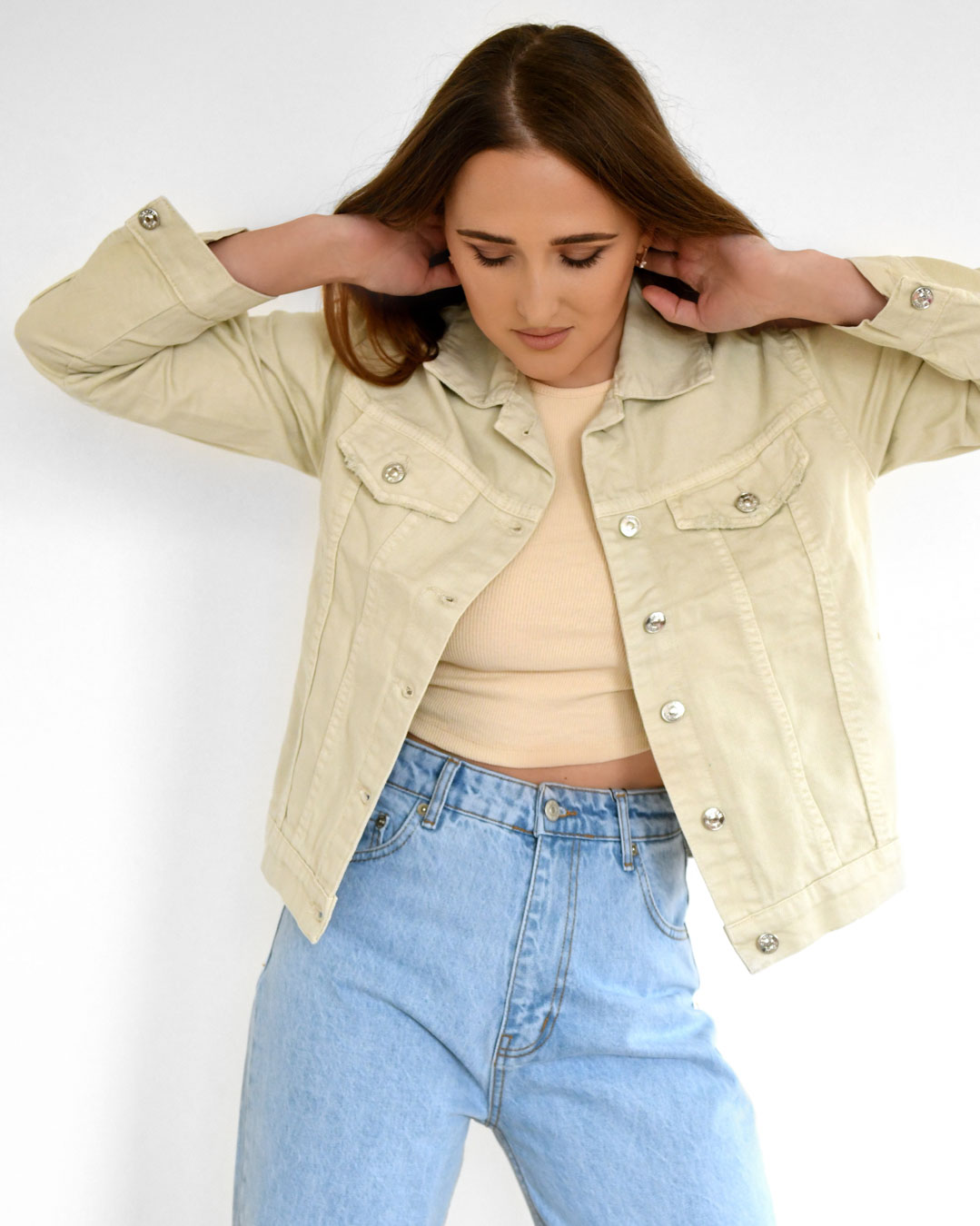 Доступные размеры :[M] Размер M:Рост модели:167 смДлина изделия:56Длина плеча:15Длина рукава:54Обхват груди:98Ширина плечей:41Стильная джинсовая куртка с отложным воротником и длинными рукавами с манжетами на пуговицах — идеальный выбор для любого га.. Читать полностью