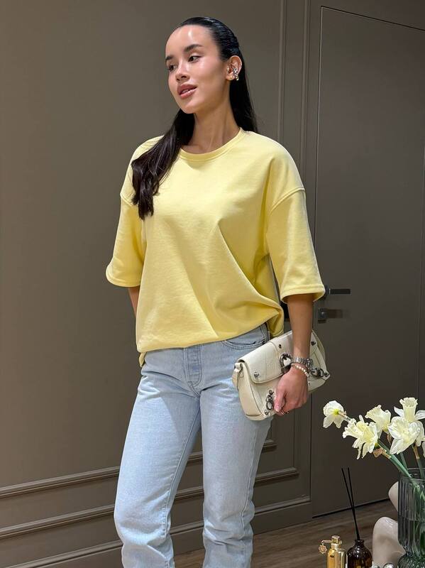 Доступные размеры :[42-46] Обхват грудей 120 смДовжина рукава 22 см (приспущений рукав)Довжина виробу 70 смДлина по спинке: 70 смРост модели: 170 смСезон: весна-літоПроизводство: УкраїнаРазмер: 42-46Цвет: ЖовтийТкань: 100% коттон.. Читать полностью