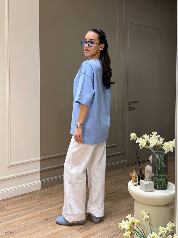 Доступные размеры :[42-46] Обхват грудей 120 смДовжина рукава 22 см (приспущений рукав)Довжина виробу 70 смРазмер: 42-46Цвет: БлакитнийТкань: 100% коттонДлина по спинке: 70 смРост модели: 170 смСезон: весна-літоПроизводство: Україна.. Читать полностью
