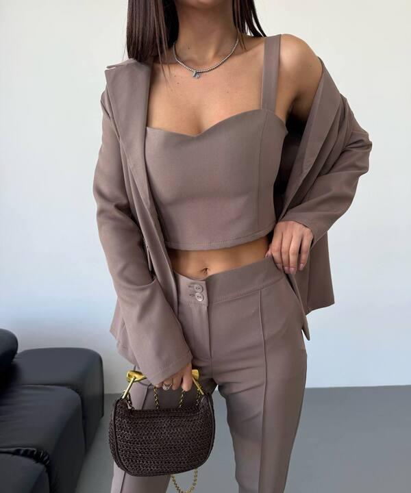 Доступные размеры :[42-44, 44-46, 46-48] Розмір 42–44Піджак: ОГ 98 см, ОТ 90 см, довжина 68 см, рукав 74 смТоп: ОГ до 92 см, ОТ 70 см, довжина 30 смШтани: ОТ 68–76 см, ОС 100 см, довжина 98 см, крок 75 смРозмір 44–46Піджак: ОГ 102 см, ОТ 94 см, довжи.. Читать полностью
